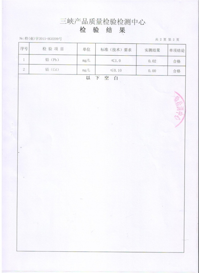 2012關(guān)公坊年青花瓷酒瓶500ml質(zhì)檢報(bào)告