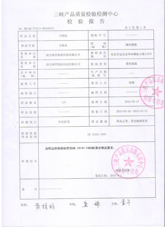 下一篇:稻花香陶瓶質(zhì)檢報(bào)告