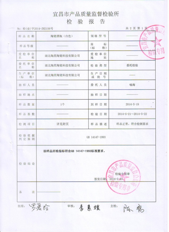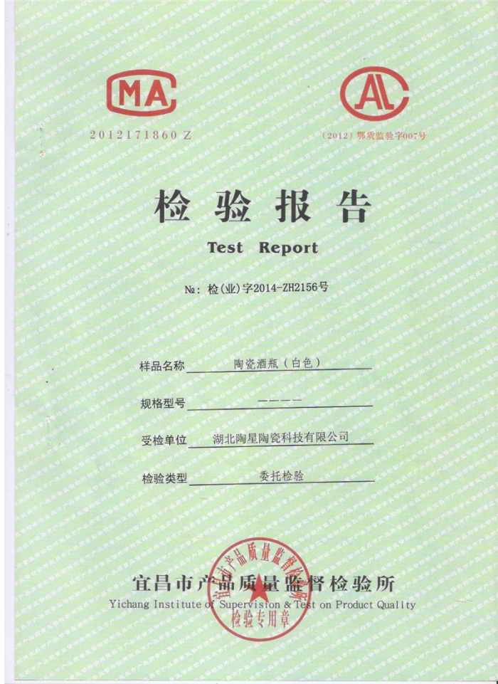 下一篇:陶瓷酒瓶紅色質(zhì)檢報告