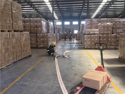 上午9:30,模擬演練正式開(kāi)始,此次演練場(chǎng)景設(shè)置為成品倉(cāng)庫(kù)發(fā)生火災(zāi),成品倉(cāng)庫(kù)保管員在巡查中發(fā)現(xiàn)火情后,立即向公司辦公室報(bào)告,接到報(bào)警后,公司組織應(yīng)急救援隊(duì)伍趕往倉(cāng)庫(kù)進(jìn)行撲救,同時(shí)撥打“119”報(bào)警。遠(yuǎn)安縣消防中隊(duì)接到報(bào)警后,迅速調(diào)集2輛消防車(chē),20余名消防官兵趕赴現(xiàn)場(chǎng),根據(jù)現(xiàn)場(chǎng)實(shí)際情況成立火情偵查組、疏散救人組、滅火攻堅(jiān)組、火場(chǎng)供水組、警戒秩序組。面對(duì)熊熊燃燒的大火,消防官兵與公司應(yīng)急救援隊(duì)伍人員精誠(chéng)團(tuán)結(jié),按照各自分工快速開(kāi)展火情控制、人員解救等工作,經(jīng)過(guò)20分鐘的緊張撲救,成功解救被困人員,有效控制火勢(shì)并最終將其撲滅。