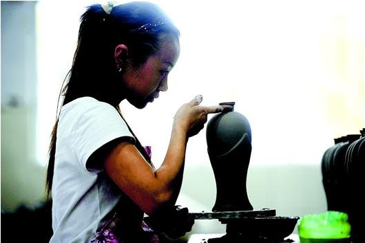 5月29日,湖北遠(yuǎn)安陶星陶瓷公司工人正在為陶土酒瓶上彩。陶星陶瓷公司與江西景德鎮(zhèn)陶瓷學(xué)院、江蘇省陶瓷研究所強(qiáng)強(qiáng)聯(lián)合,形成了產(chǎn)學(xué)研一體化,為技術(shù)創(chuàng)新提供強(qiáng)大支撐。作為勞動(dòng)密集型企業(yè),帶動(dòng)當(dāng)?shù)亟?000名農(nóng)民工就業(yè)。元月至4月,該公司完成陶瓷酒瓶產(chǎn)量超千萬只,同比增長過三成。