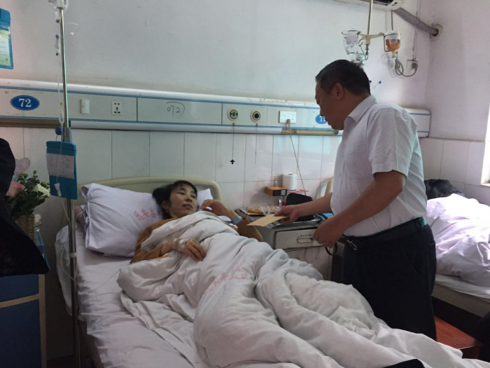 4月27日,陶星陶瓷公司副總經(jīng)理、工會(huì)主席陳成一行來(lái)到遠(yuǎn)安縣人民醫(yī)院看望慰問(wèn)患病職工王能菊,并將籌集到的6000多元愛心善款交到她手中。