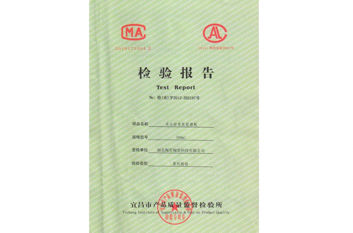 2012關(guān)公坊年青花瓷酒瓶500ml質(zhì)檢報告
